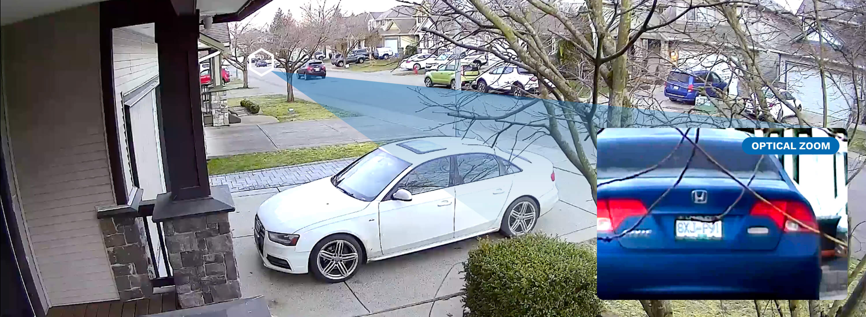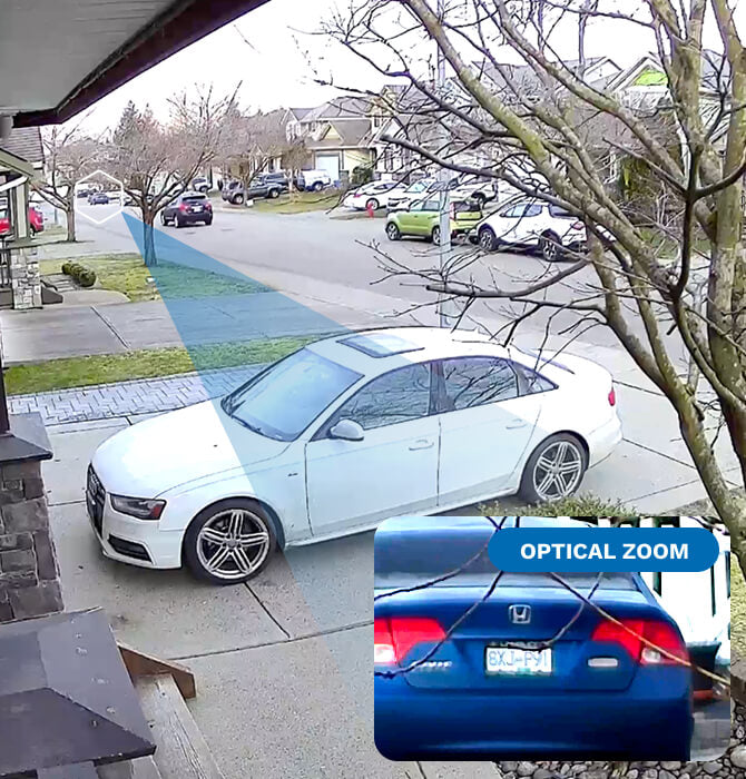 Zoom in like a telescope up to 200 meters, capturing crystal clear details like license plates or faces without losing any picture quality.